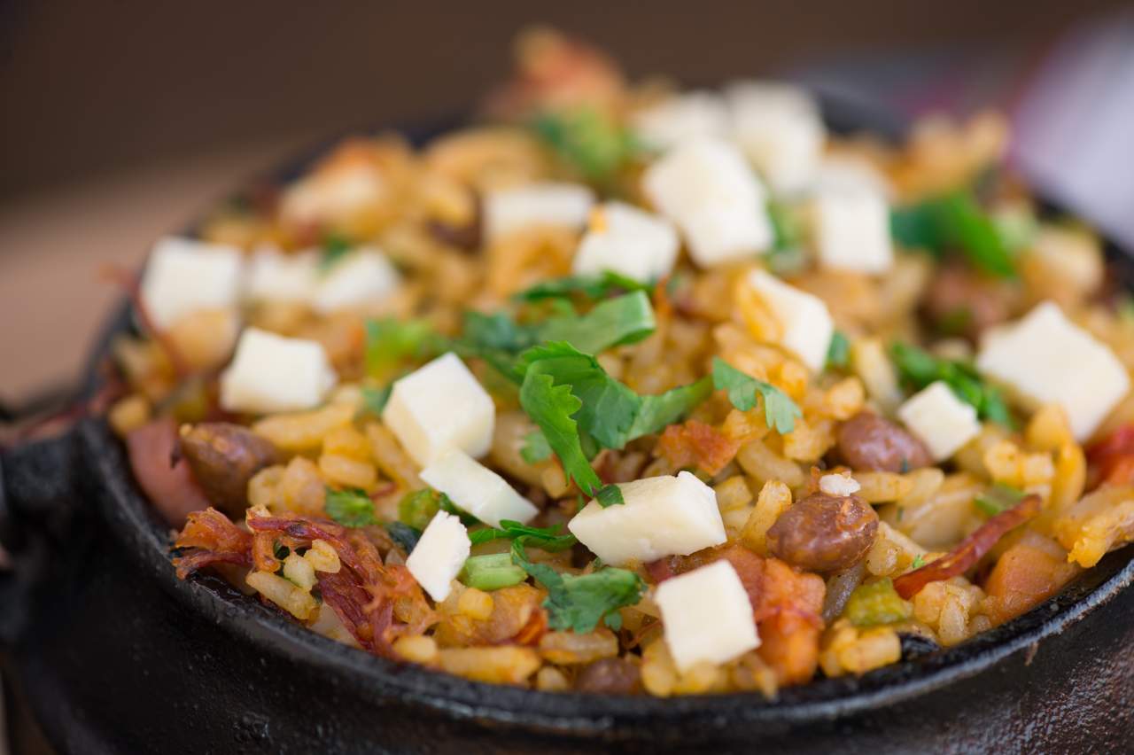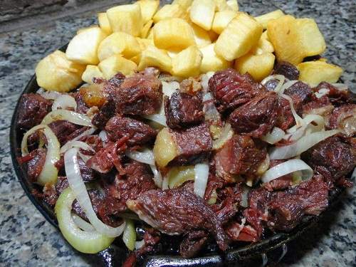 Onde fica o Ceará? No setor alimentício a gastronomia local é muito rica, influenciada tanto pela costa litorânea com muitos frutos do mar quanto do sertão com muitas iguarias, buchada de bode, baião de dois, carne de sol com macaxeira, a paçoca cearense que é feita a base de farinha de mandioca e carne de sol.